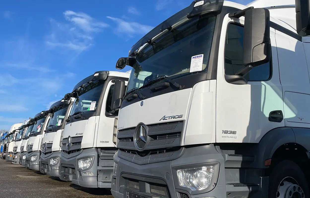 Nebim Used Trucks beschikt over eigen transportmaterieel voor het ophalen van ingekochte voertuigen en het vervoeren van verkocht materieel naar havens in Nederland, België en Duitsland.